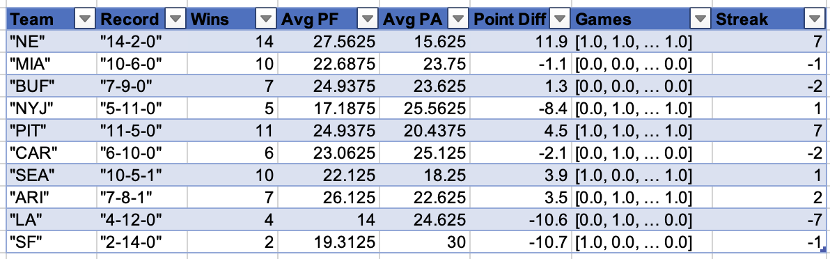 | PIT | 11-5-0 |